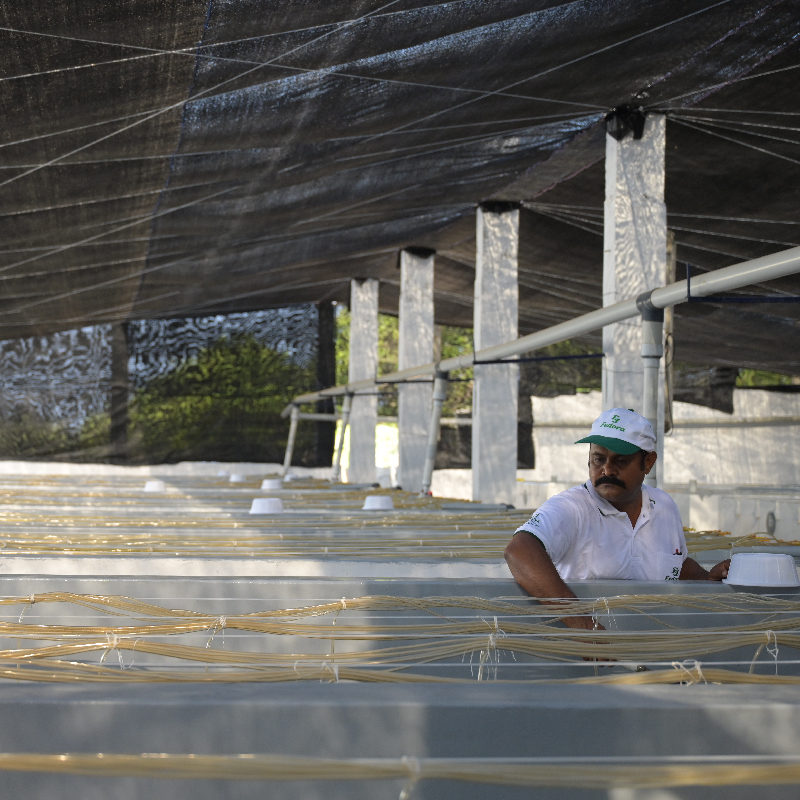 To further safeguard our facility from cross contamination or breaches in biosecurity, testing of all parameters that ensure the health and quality of the seedlings is done on a regular basis with the help of our inhouse lab. We ensure that the water used for production, be it seawater or freshwater, goes through multiple filtration and purification processes. This is done with the help of our up to date equipment and assures the elimination of contamination from an external water source.